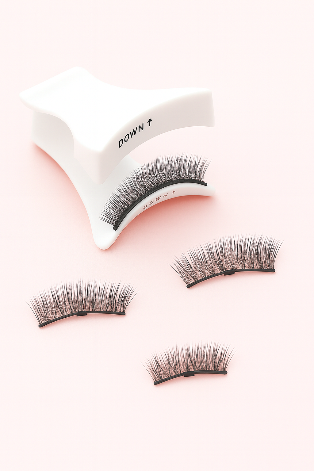 Place the lower lash on the magnets up applicator. Align the upper lashes above the magnets down, ensuring visibility.